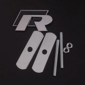 Volkswagen R logo emblem till grillen. Emblemet skruvas fast på baksidan av grillen.